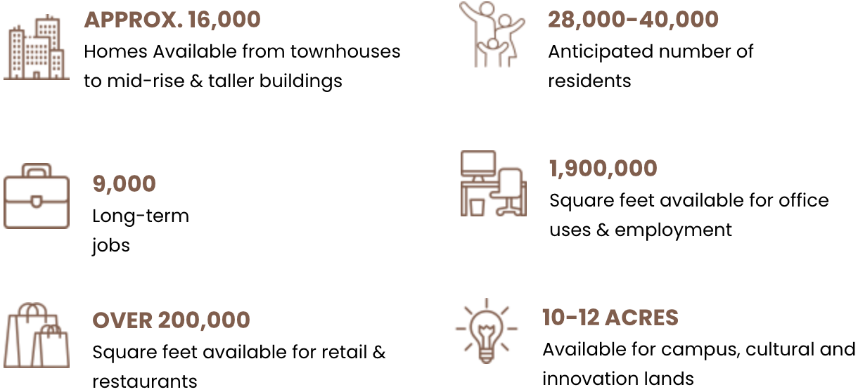 A dynamic work ecosystem featuring flexible office space, an Innovation Hub, and a conference center designed for cross-sector collaboration and networking. It fosters innovation and business incubation, driving economic prosperity, with a hotel to accommodate visitors attending conferences or launching new ventures.